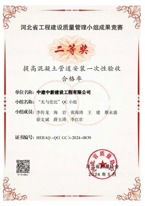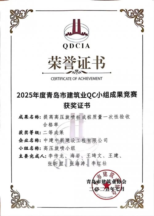 项目团队遵循“建工出品皆要精品”的质量管理理念,打破常规使用双管法对盐碱地质软土地基进行高效高质加固,为后续施工筑牢质量“压舱石”。项目“技术攻坚小组”共计优化图纸问题百余项,创新应用“分区探查+高压旋喷桩+深层换填”相结合,攻克在富砂层、高水位、地质复杂条件下施工难题,推动项目降本增效。项目先后荣获实用新型专利1项,省级QC成果二等奖2项,发表论文1篇,市级QC成果二等奖1项,公司优秀QC成果三等奖及公司“四优化”优秀成果一等奖。