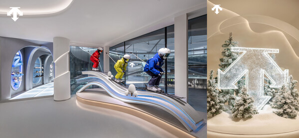 一层核心位置设置有"水晶球"装置,透明球体内包裹雪花意象与品牌标识,如同被封存的冰雪记忆,承载着关于运动、探索与梦想的最初想象。在"未来之城"的整体路径中,儿童空间既是旅程的终点,也象征着新的起点。迪桑特希望通过这一温和而富有想象力的场域,使品牌所坚持的冰雪精神与匠心理念,在代际之间自然流转,持续生长。