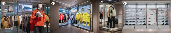 围绕这一空间起点,品牌在此系统呈现覆盖滑雪、综训、DUALIS系列及鞋履在内的多元产品体系,展现其在不同运动场景中的专业研发积累。产品陈列与空间结构相互配合,使品牌从滑雪起步、并逐渐延展至多元专精运动的路径在空间中被逐步呈现。