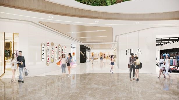针对如皋、吴江这类项目,空间焕新聚焦于动线效率提升,从而实现解决客流盲区的痛点:如皋将原有“一”字型次动线升级为7.4米宽的“回”型双循环动线,增设双侧开口并打通内外铺位打造6个沿街大铺,还预留扶梯改造空间为未来业态调整留弹性;吴江则在1F打造“主次互补”的双动线系统,同时设三个入口实现店铺无死角曝光,为消费者创造轻松、舒适、可探索的游逛体验,从基础上激活了商业空间的活力。