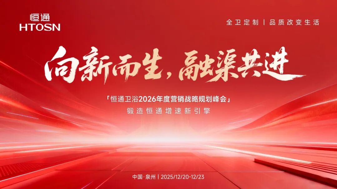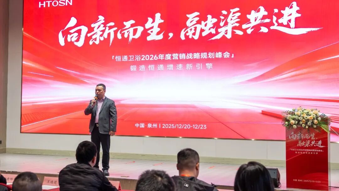 12月21日,恒通卫浴2026年度营销战略规划峰会在维也纳国际酒店隆重召开。本次峰会以“向新而生·融渠共进”为主题,吸引了来自全国各地的恒通经销商代表齐聚一堂,共同回顾2025年营销成果,展望2026年战略布局,为新一年的市场开拓与品牌发展擘画蓝图。