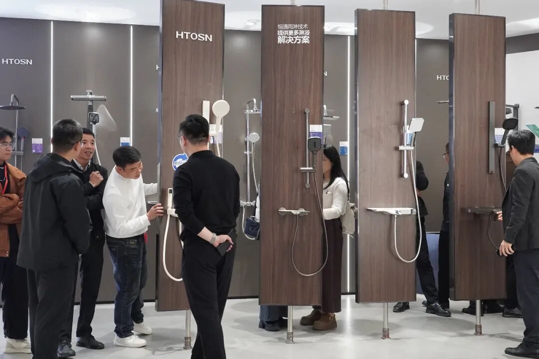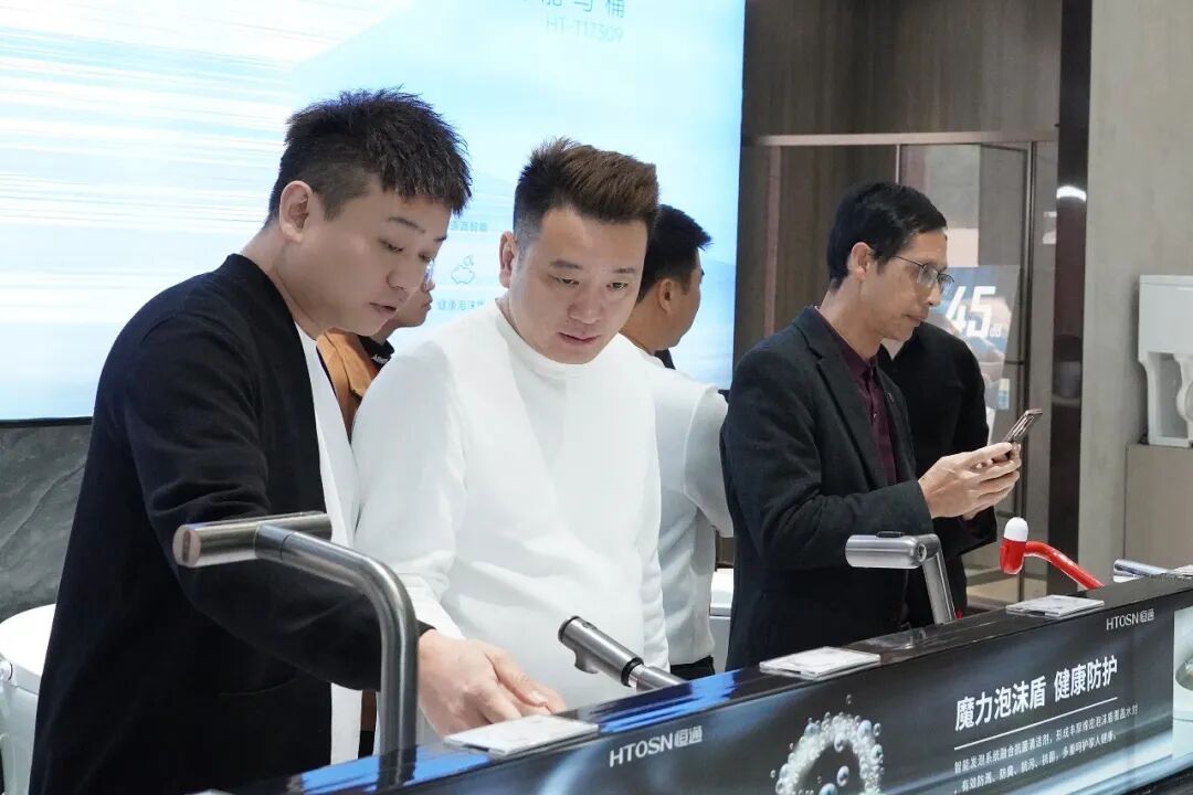 随后,全体参会者前往恒通卫浴总部展厅,近距离参观并体验了2025年度的重磅新品系列。智能、环保、设计感成为新品的关键词,现场交流热烈,经销商对新产品线表现出浓厚兴趣与信心。