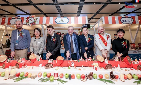 在「享法冬季主题活动北京站-臻味游宴」开幕式现场,法国驻华大使馆驻总领事GuillaumeRoy华继永先生及法国农业参赞(农业及食品企业发展和合作)MaxMONOT先生出席,携手来宾们以冬日法式臻味掀启佳节序幕。法式艺术长桌巧妙融合了法国品牌餐具与缤纷满目的节令食材,令大家在餐桌方寸之间的味觉叙事中,深刻感受法式风味与东方风韵的交融共鸣。而全城瞩目的10米BûchedeNoël巨型树根蛋糕延续了法式冬至庆典的千年传统,吸引了数百人参与甜蜜互动,通过“臻味分享仪式"传递出温馨团聚的节日温暖。