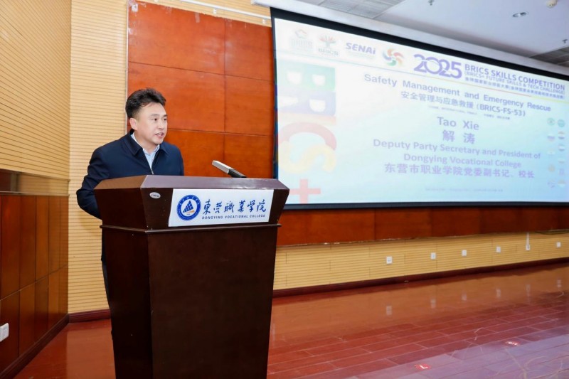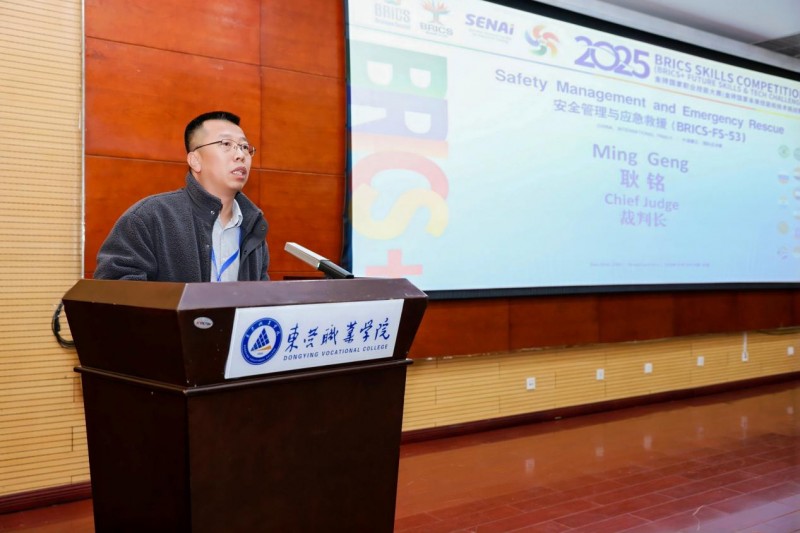 2025年12月25日下午,2025金砖国家职业技能大赛安全管理与应急救援赛项国际总决赛闭幕式暨颁奖典礼在东营职业学院图书楼一楼报告厅隆重举行,为期三天的跨国竞技圆满收官。来自金砖国家及“金砖+”国家的78支参赛队伍、近400名师生代表共同见证了这一荣耀时刻。