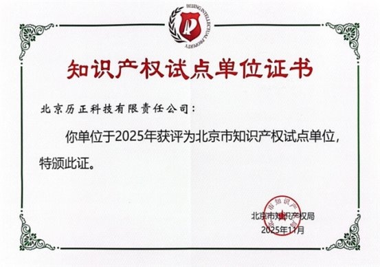 据悉,此项授牌并非历正科技近期获得的唯一权威认可,11月,历正科技被北京市知识产权局正式评定为“北京市知识产权试点单位”。两大权威资质接连落地,不仅是官方对历正科技长期坚持自主创新、深耕专业领域所取得成就的充分肯定,更清晰勾勒出历正科技作为行业技术领航者,通过技术创新赋能产业发展的坚实路径。