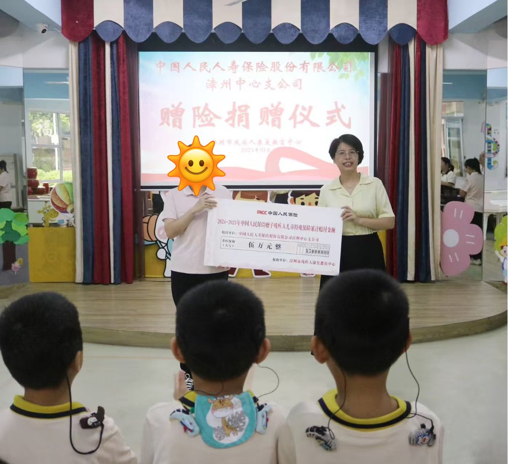 人保寿险漳州中支始终坚守企业社会责任,致力于关爱社会特殊群体。2024年秋季,公司向漳州市某残疾人康复中心的65名残疾儿童捐赠重大疾病保险,为他们抵御潜在风险筑牢保障防线。