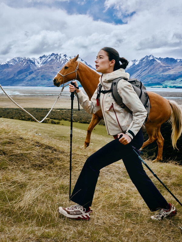 刘诗诗的探店之路,始于HIKE登山徒步区入口处的「驭马迎风」新春限定系列。该系列灵感深植于云南茶马古道,巧妙呼应马年昂扬向上的意象,汲取山河色韵、茶染肌理与民族图腾,礼赞古道先行者所承载的人文精神。该系列产品涵盖从冲锋衣、软壳夹克、抓绒马甲、徒步裤到专业鞋履等全品类,致力于为新春的多元场景提供完整穿搭方案。全系列产品于12月23日在深圳万象城KOLONKRAFT旗舰店与品牌官方小程序首发,并已于12月25日起在线下指定门店发售。