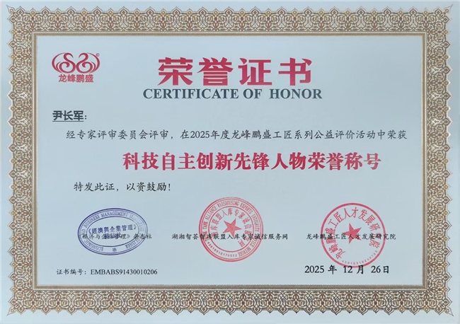 近日,《经济与企业管理》杂志社、龙峰鹏盛工匠人才发展研究院、智库联盟入库专家诚信服务网等单位联合发布2025年度龙峰鹏盛工匠系列公益评价活动名单,东莞市翔通光电技术有限公司的核心技术专家尹长军凭借在科技自主创新领域的突出表现,成功获评2025年度“科技自主创新先锋人物”称号。