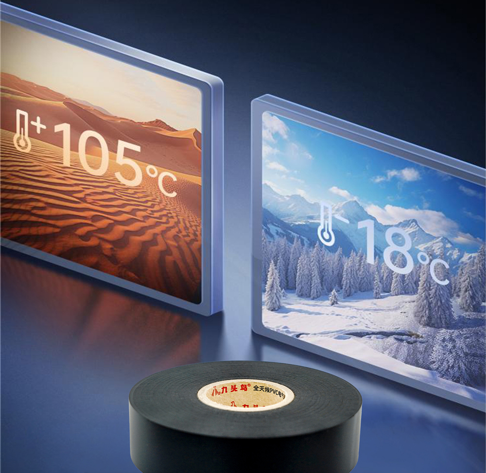 传统胶带在温度适应性上往往存在局限。九头鸟J93全天候PVC电气胶带通过配方优化与严格工艺控制,实现了宽广的温域适应性,可在-18℃至105℃的极端温度范围内保持性能稳定。无论北方严寒冬季的户外作业,还是南方高温闷热环境或设备内部的热积聚区域,J93全天候胶带仍能保持粘性持久、基材柔韧,不开胶、不脆化,确保绝缘层长期有效,真正实现“四季皆宜,南北通用”。