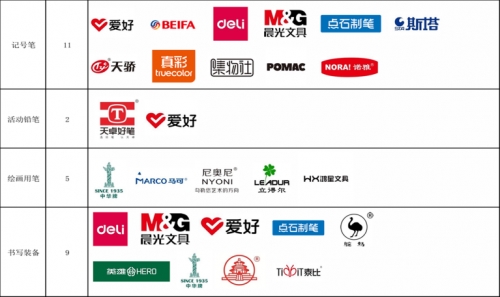 入选品牌覆盖铅笔、钢笔、圆珠笔、记号笔、活动铅笔、绘画用笔、书写装备七大核心品类。其中,铅笔品类有中华牌、晨光等9个品牌;钢笔品类包含英雄、点石制笔等5个品牌;圆珠笔品类汇聚晨光、爱好、白雪等16个品牌;记号笔品类有爱好、贝发等11个品牌;活动铅笔品类入选的是天卓、爱好2个品牌;绘画用笔品类包括中华牌、马可等5个品牌;书写装备品类则有得力、英雄等9个品牌,充分展现了我国制笔行业品牌建设的多元活力与综合实力。