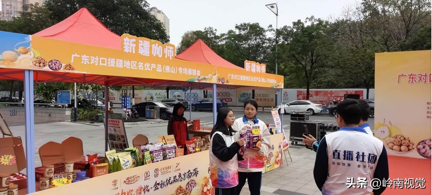 活动现场最具特色的当属南海九江职业技术学校打造的两大互动专区。在直播带货专区,该校学生主播身着统一服饰,熟练地对着镜头介绍伽师羊肉、西域果干等产品,通过试吃讲解、答疑互动、限时优惠等形式,吸引了大量线上网友关注,直播间实时观看人数不断攀升,订单持续刷新。“把课堂所学的直播运营知识用到助农帮扶中,既能帮助新疆农户拓宽销路,又能锤炼专业技能,特别有意义。”参与直播的学生表示。