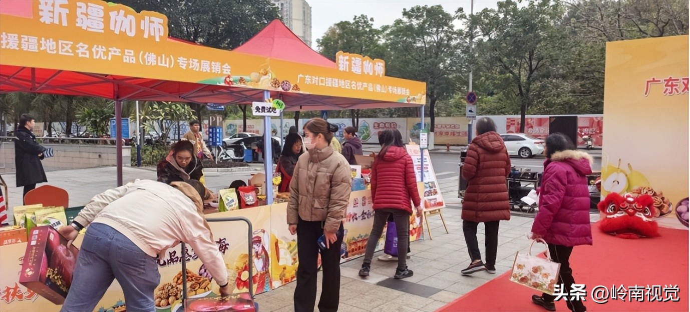 锣鼓喧天庆盛会,疆粤同心暖寒冬。2025年12月26日,由南海区发展和改革局、南海区农业农村局指导,佛山鹏辉农业科技有限公司、南海承展千灯湖酒店联合主办,南海九江职业技术学校协办的广东对口援疆地区名优产品(佛山)专场展销会暨2025年消费帮扶金秋行动(南海专场),在南海承展千灯湖酒店广场正式拉开帷幕。本次活动以“消费帮扶助农增收、金秋优品惠享南海”为主题,创新融入“产教协同助帮扶”模式,通过“特色展销+非遗展演+校园直播+美食体验”的多元形式,让新疆优质特产与佛山本土文化深度交融,为深化粤疆协作、拓宽消费帮扶路径注入全新活力。
