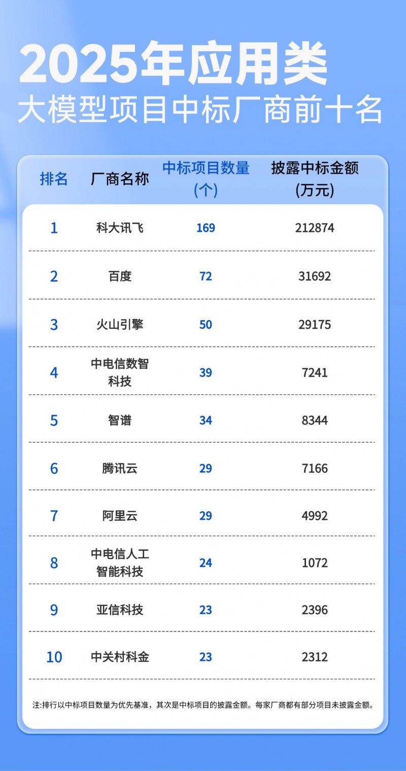 1、应用类大模型中标TOP 10,垂类厂商打破大厂垄断