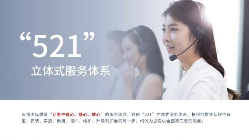 “服务零缺陷,追求100%应用成功率”是智邦国际始终坚守的核心服务目标。针对企业在管理软件全生命周期中,从安装部署、实施上线、启用适配,到人员培训、运维保障、升级迭代等全环节的服务需求,智邦国际始终秉持“以客户为中心”的工作理念,持续强化服务意识、精进服务技能,为企业提供专业、快捷、高效、安心的全流程服务支持,切实保障软件系统始终稳定、高效运行,让企业数智化转型无后顾之忧。