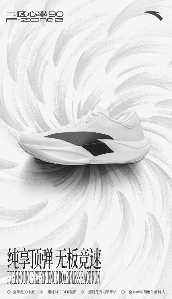 "纯享顶弹、无板竞速",安踏"二区心率90"的推出正是将竞赛氮科技融入日常,助力长距离抗衰,以轻量快弹的节奏帮助跑者高效训练。