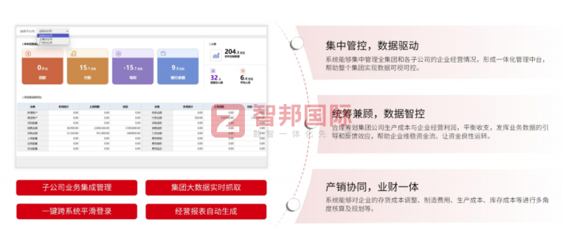 智邦国际新一代一体化ERP系统,专为集团型企业量身打造,围绕“统一、协同、智能、可控”四大关键词,构建起覆盖全组织、全业务、全数据的管理新生态。其核心创新体现在以下五大维度: