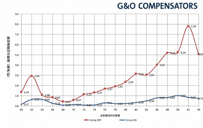 (G&OCompensators振动补偿器开启前后振动幅度变化对比图)