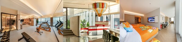 南京毅风酒店健身房、大堂亲子区域、亲子主题房型