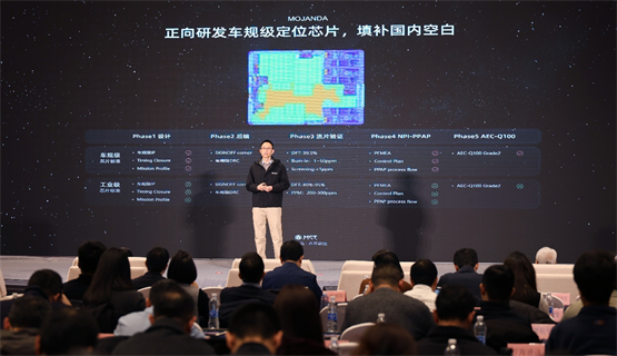在大会现场,MCT毫厘智能董事长兼首席执行官郦可正式发布车规级北斗芯片MOJANDA330。
