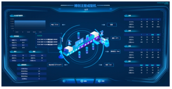 集成物联网数据采集技术,通过网口直采、串口转网口等方式,实时采集并展示设备运行动态参数(开关机状态、电流、温度、产量等)与配置参数(压力、成型时间、转速等),赋能故障预警与异常分析。