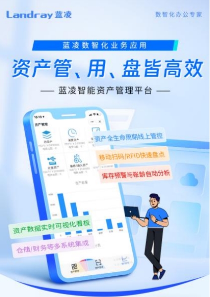 数智化办公专家:蓝凌,精准锚定企业需求,打造智能资产管理平台,构建起覆盖固定资产、设备资产的智能管理体系。通过全周期覆盖、标准化流程、智能化运维、可视化数据等能力,让企业资产管·用·盘全程高效。