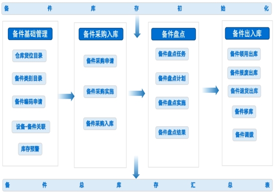 构建备件分类目录与编码体系,实现备件采购、入库、盘点、调拨、领用、报废等全周期闭环,降低库存占用资金。