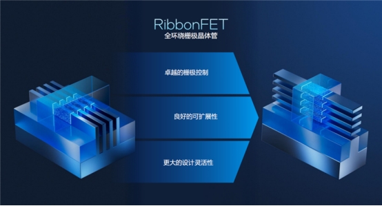 至于RibbonFET全环绕晶体管,它其实是GAA全环绕晶体管结构的一种实现方式,台积电、三星也都有类似的技术,但具体设计各有各的特色。