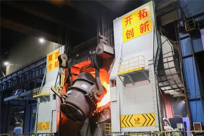 七年耕耘,七年蝶变。2021年5月,一期工程高炉点火投产,158万吨炼铁、175万吨炼钢产能落地,高强螺纹钢挺起中原建设的钢铁脊梁。2024年10月,二期工程热试成功,2025年6月全球首条5600mm+5500mm双超宽轧机惊艳亮相,全线达产后年产260万吨高端宽厚板,11月即创下日产7537吨的行业纪录;周口钢铁的成长曲线一路昂扬。从传统建材到高端板材,从本土布局到国际出海,这家年轻的钢铁企业,以党建为根魂,以人才为基石;以创新、创效、创业三大策略为引擎,以市场化、法治化、国际化三化原则为准则,以科技创新为引擎,勇立钢铁行业潮头,在建设世界一流钢铁企业的征程上步履铿锵,用铁与火的激情铸就着高质量发展的时代华章。