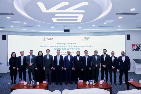 2月3日,沙特延布阿美中石化炼油有限公司(延布炼厂)在北京分别与石化盈科、华为公司及中国石化物资装备部(国际事业公司)签署合作备忘录与采购服务协议。延布炼厂总裁兼首席执行官SaadBinMatlig及中国石化物资装备部(国际事业公司)副总经理赵宇城、华为化工建材军团总裁李俊朋、石化盈科党委副书记马永林,分别出席对应会议及签约仪式。