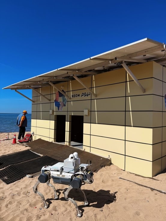 在NEOM这片被烈日炙烤的沙滩上,云深处机器狗完全替代人工进入高危与恶劣场景:无论夏季52℃的极端高温,还是沙尘弥漫的低能见度天气,机器狗皆能按照既定路线自主完成巡逻,并能在电量低时自主判断、返回充电,实现全流程无人干预。