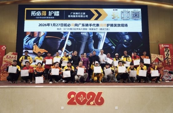 2026年1月27日,泉州耐优防护用品有限公司作为拓必得护膝的生产制造商,向广东骑行之家的外卖骑手们捐赠了拓必得骑行护膝,守护骑手们的骑行安全与健康。