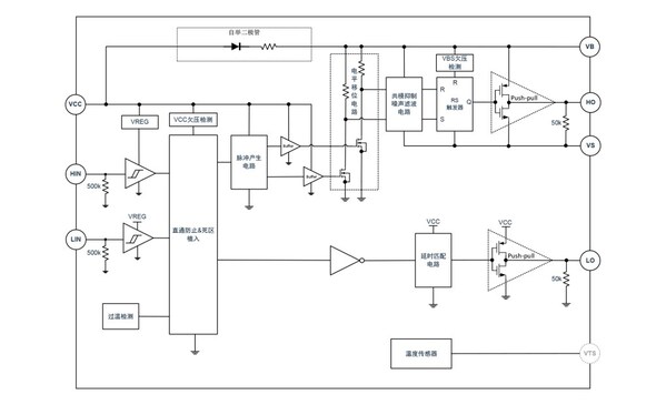 该系列产品内置多重保护功能,如VCC/VBS欠压保护、过温保护、直通防止功能以及内置400ns死区时间,可有效保护功率器件稳定运行。