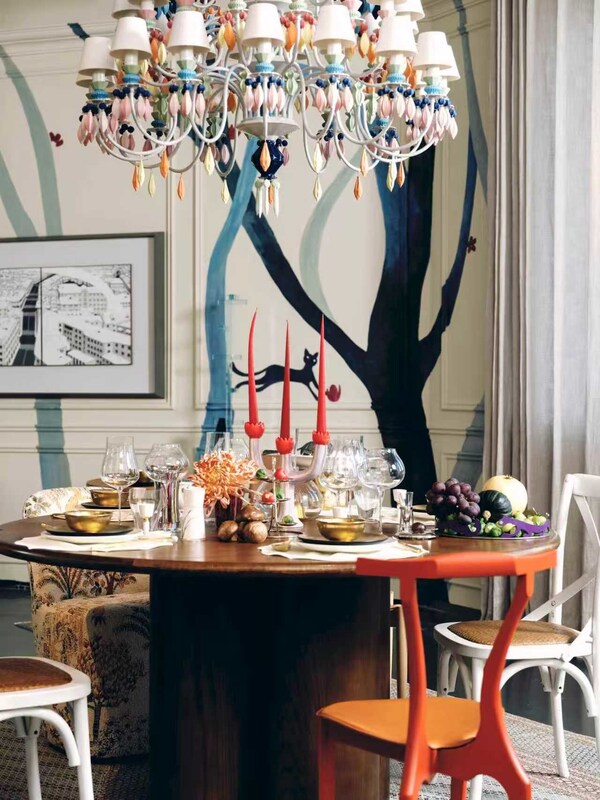 设计师KayKuo以"错影丛林"为餐桌主题,自然的生命力悄然蔓延:树木的枝条在外墙攀升,继而步入超现实主义的丛林之境。在光影交错的房间里,各式各样的动物悄然出现,日常在奇幻中得到重新定义。