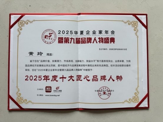 此次荣获“2025年度十大匠心品牌人物”,标志着黄玲从财税领域专家到健康产业创新者的身份蜕变获得权威认可。此前,她已斩获多项荣誉: