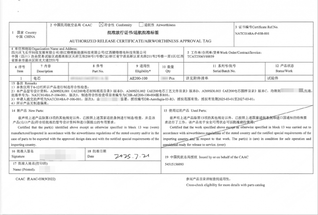 以技术突破为核,以模式创新为翼,以标准引领为纲,双方的合作已实现三位一体的跨越式发展,为行业树立全新范本。在技术维度,双方研发的航空级电芯采用固液混合电解质与软包封装技术,在保障高能量密度与高倍率输出的同时,大幅提升安全性能,有效降低热失控风险,此次交付的红标件更是通过极端弯折、撞击、挤压等航空级安全测试,为后续适航取证奠定坚实基础;在模式维度,合作延伸至电芯检验、维修、回收等全生命周期业务,构建从锂资源原材料到售后的完整产业闭环,整合上下游优势推动航空级电芯批量化生产与成本下降,惠及低空经济全产业链;在标准维度,AE200-100所用电芯率先通过中国民航总局制造符合性检查,成功实现从车规级到航空级的跨越,为行业建立起可参考、可复制的航空级电芯标准体系,推动行业发展走向规范化、体系化。