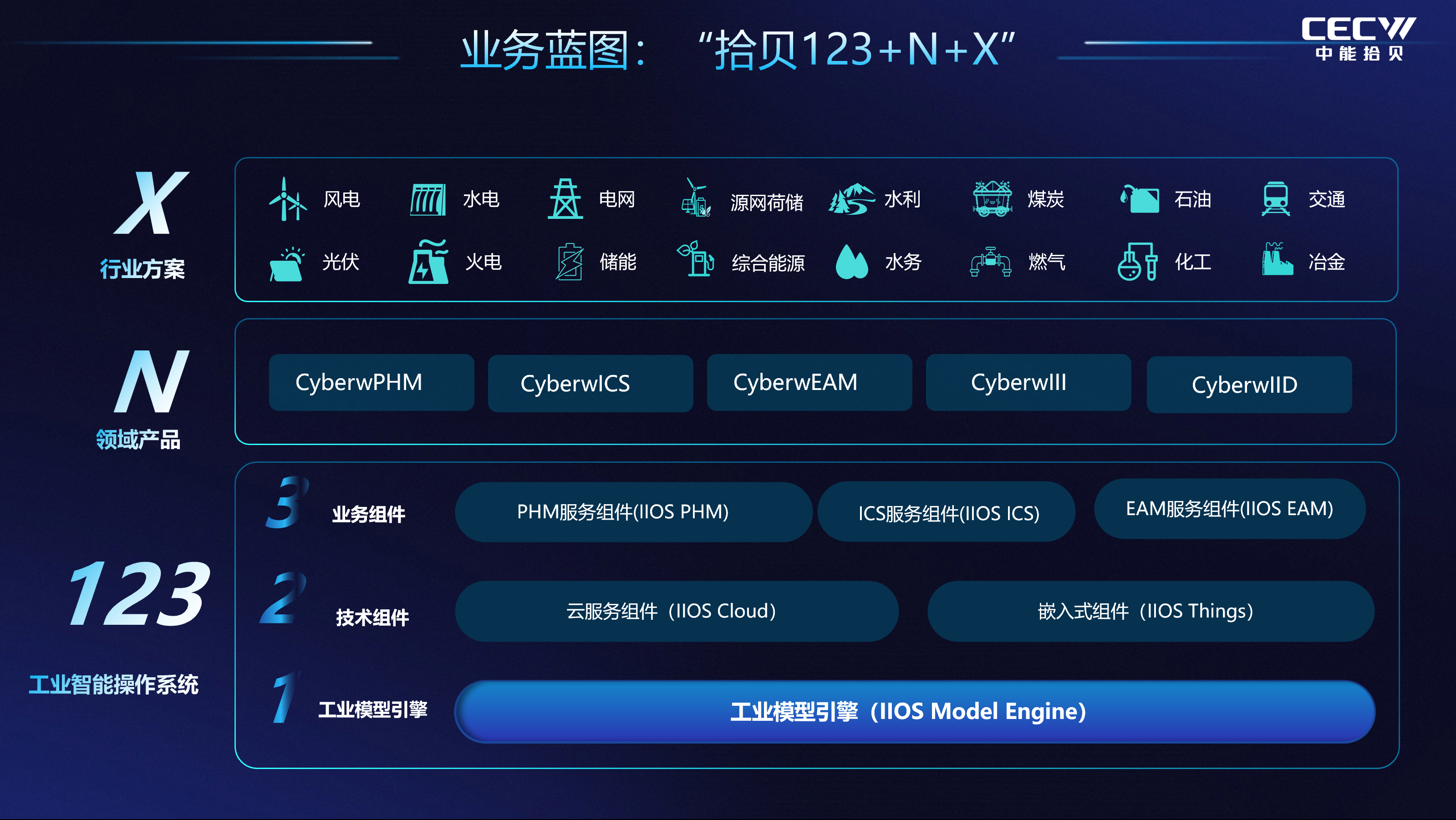 什么是“拾贝123+N+X”?它的底座是中能拾贝全栈自研的CyberwIIOS工业智能操作系统。在这套系统中,硬核技术与业务场景实现了完美的闭环融合。