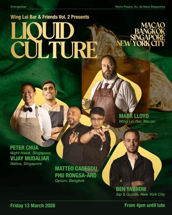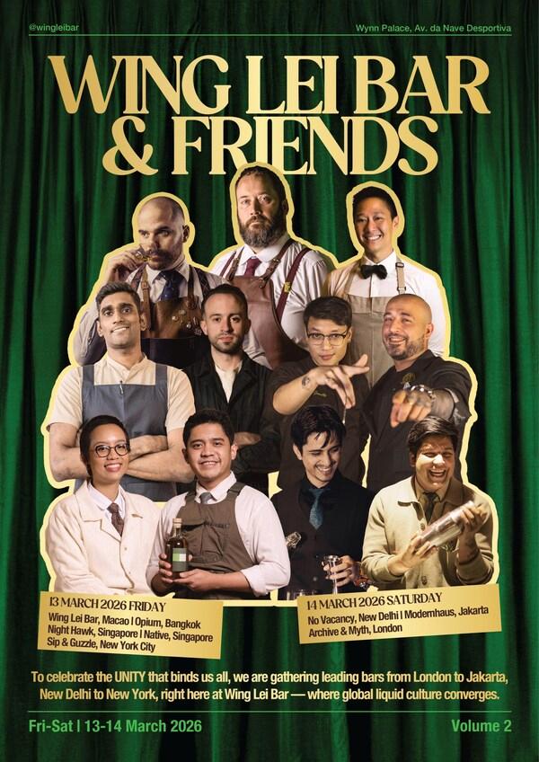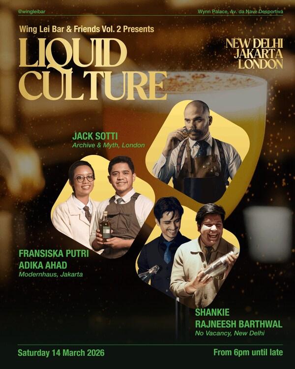 澳门2026年3月4日--延续首次活动的热烈回响,永利吧年度企划"WingLeiBar&Friends"第二篇章将于3月13至14日登场,再次将永利皇宫化身为鸡尾酒爱好者的朝圣地。来自纽约、伦敦、曼谷、新加坡、新德里及雅加达六座城市的顶尖酒吧代表将齐聚一堂,带来结合客座调酒、专题对谈与文化交流的丰富周末体验,为澳门三月最受瞩目的鸡尾酒盛事揭开序幕。