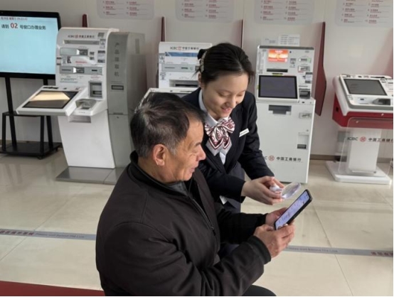 工行新乡青龙路支行为到店老年客户提供适老化工具。
