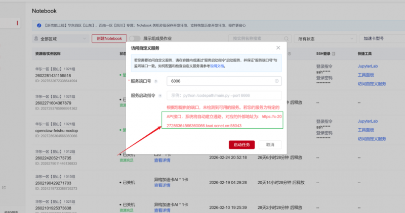 进入Notebook,找到对应的已部署OpenClaw的实例,复制服务器的公网IP地址。