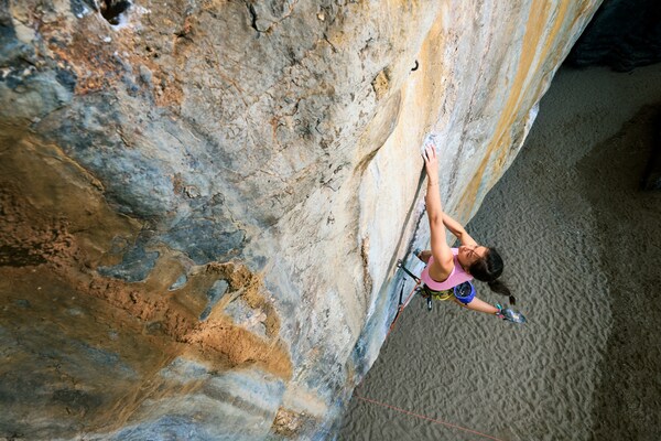 始祖鸟运动员李美妮在甲米攀登5.14难度的线路