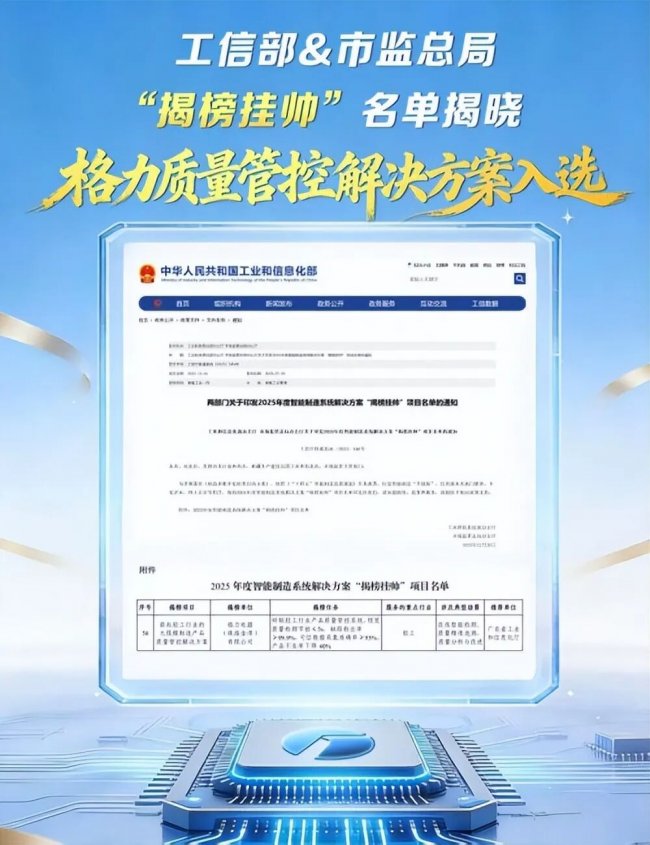 2025年,工业和信息化部与国家市场监督管理总局公布智能制造系统解决方案“揭榜挂帅”项目名单,格力凭借《面向轻工行业的大规模制造产品质量管控解决方案》成功入选。这一方案构建的全价值链质量协同平台,解决了大规模工业制造中质量数据可信度低、缺陷检测滞后、产业链协同不足等行业共性难题,将质量管理协同提效50%,质量故障率同比下降30%,设备加工全过程工序能力CPK≥1.67(CPK即工序能力指数,数值越高代表工序越稳定,产品质量越可控),产品一次校验合格率提升至99.9%。这一成果,不仅是对格力质量管控能力的权威认可,更为制造业质量管控的数字化转型树立了行业新标杆。