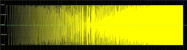 示例1展示了该选件生成从20Hz到20kHz慢速扫描正弦波的能力。此类波形常用于驱动振动台,以识别汽车和航空航天应用中的机械共性。65xx系列DDS选件可同时运行多达16个不同频率范围的扫描,显著缩短了测试时间。