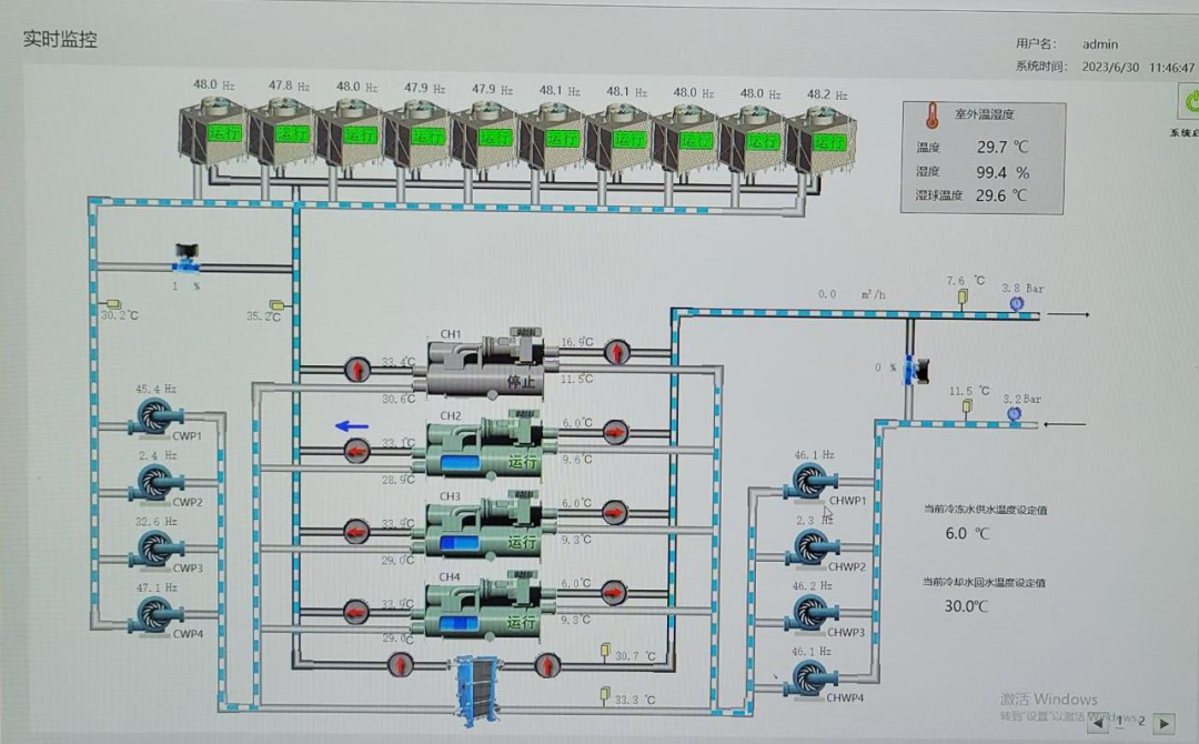 比如,天气降温了,系统会下发运行指令降低冷却塔的运行强度,减少风机的耗能,虽然主机负荷略有增加,但整体耗能更优,成本更低。