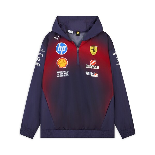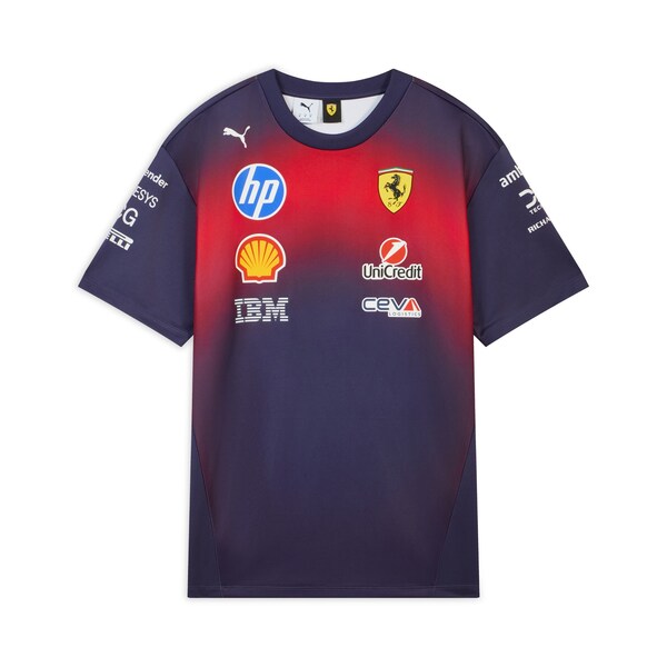 全系列深挖车迷共鸣,将赛道精神与生活方式结合,通过匠心独运的专属细节,打造TIFOSI的信仰图腾。2026年恰逢中国农历火马年,PUMA以此为灵感,将速度与能量的意象注入设计。系列以深邃蓝调铺陈为底,红黄火焰纹样流转于连帽卫衣、T恤及帽款之上,如同赛车飞驰时留下的光影轨迹,也寓意着新一年的热烈征程由此开启。跃马红与明快亮黄交织碰撞,既呼应了PUMA的赛道基因,也映衬火马年的奔放与激情。系列复刻帽款则分别饰有夏尔•勒克莱尔(CharlesLeclerc)与刘易斯•汉密尔顿(LewisHamilton)的个人标识,重现两位车手在赛道上的锋芒印记;帽檐点缀的跃马金色盾标,延续法拉利车队官方装备的专业视觉语言,为赛道装备点睛升华。