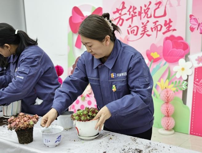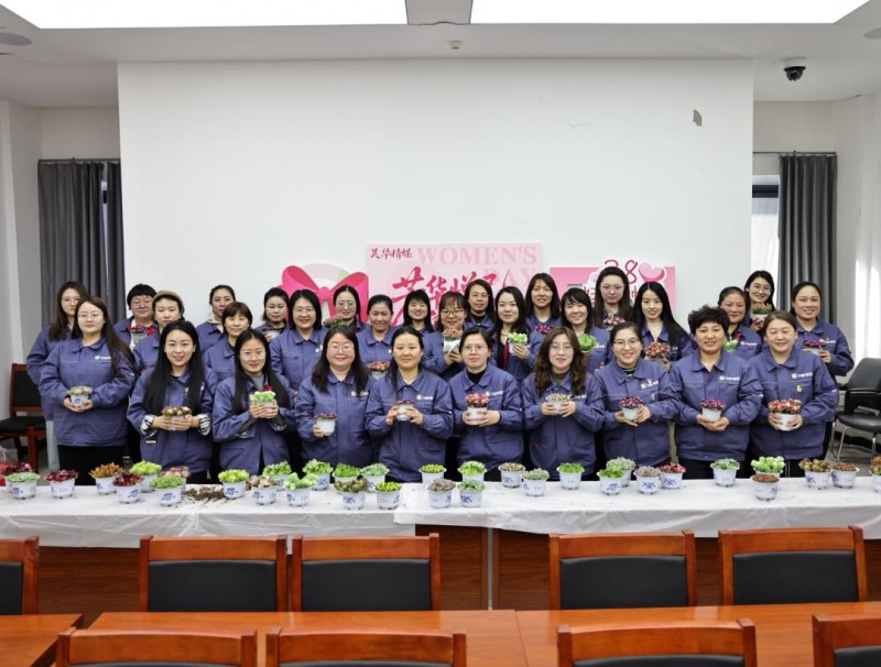 摆放,女员工们兴致盎然地挑选绿植、搭配盆土,在专业指导下小心翼翼地栽种、铺面,亲手打造专属自己的“春日小确幸”。大家相互交流种植技巧,分享审美创意,欢声笑语中,一盆盆萌态可掬的多肉盆栽应运而生,既体验了手工创作的治愈乐趣,也收获了满满的成就感。