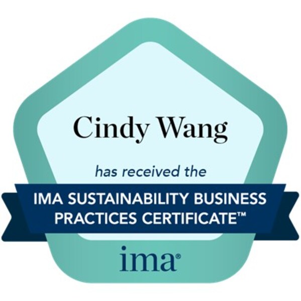 此外,为彰显学习者的个人成就,在成功完成"IMA可持续发展商业实践证书课程"后,成员可通过电子邮件获得一份带有个人姓名的定制化数字徽章(digitalbadge),用于在社交平台或个人职业档案(如领英个人资料)中进行展示,这也是对学习者专业投入与成果的个性化、权威性的认可。