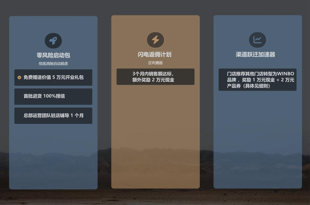 这不是一次简单的加盟合作,而是一次行业重构与结伴同行,共赴新程,定义未来,WINBO为你搭建通往未来的桥梁。