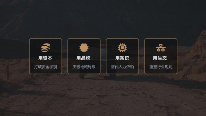 我们深知每家门店所处的发展阶段不同,因此推出四级弹性合作模式,无论你是临街门店、区域龙头还是供应链玩家,汽车户外设备门店,汽车潮玩文创店,及汽车文旅俱乐部,都能找到最适合自己的升级路径。