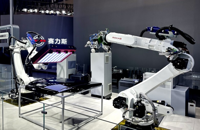 双方的深度合作也在行业舞台上持续亮相。在2025世界智能产业博览会上,珞石机器人携NB220系列大负载工业机器人亮相赛力斯集团展馆,现场演示车身漆面缺陷“检测+打磨”全流程自动化解决方案 。这一展现“机器人+AI”深度融合的创新方案成为展会一大亮点,也印证了双方在技术创新与场景落地层面的深度协同。