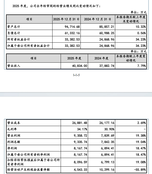 亮眼的业绩表现并非偶然,除2026年一季度预计实现高速增长外,公司在报告期内同样保持着稳健且强劲的发展势头。2022年至2025年,广泰真空分别实现营业收入2.81亿元、3.12亿元、3.79亿元和4.08亿元,营业收入复合增长率13.24%;归属于母公司所有者的净利润分别为4425.59万元、7303.45万元、6894.41万元及8167.74万元,归母净利润复合增长率22.67%。